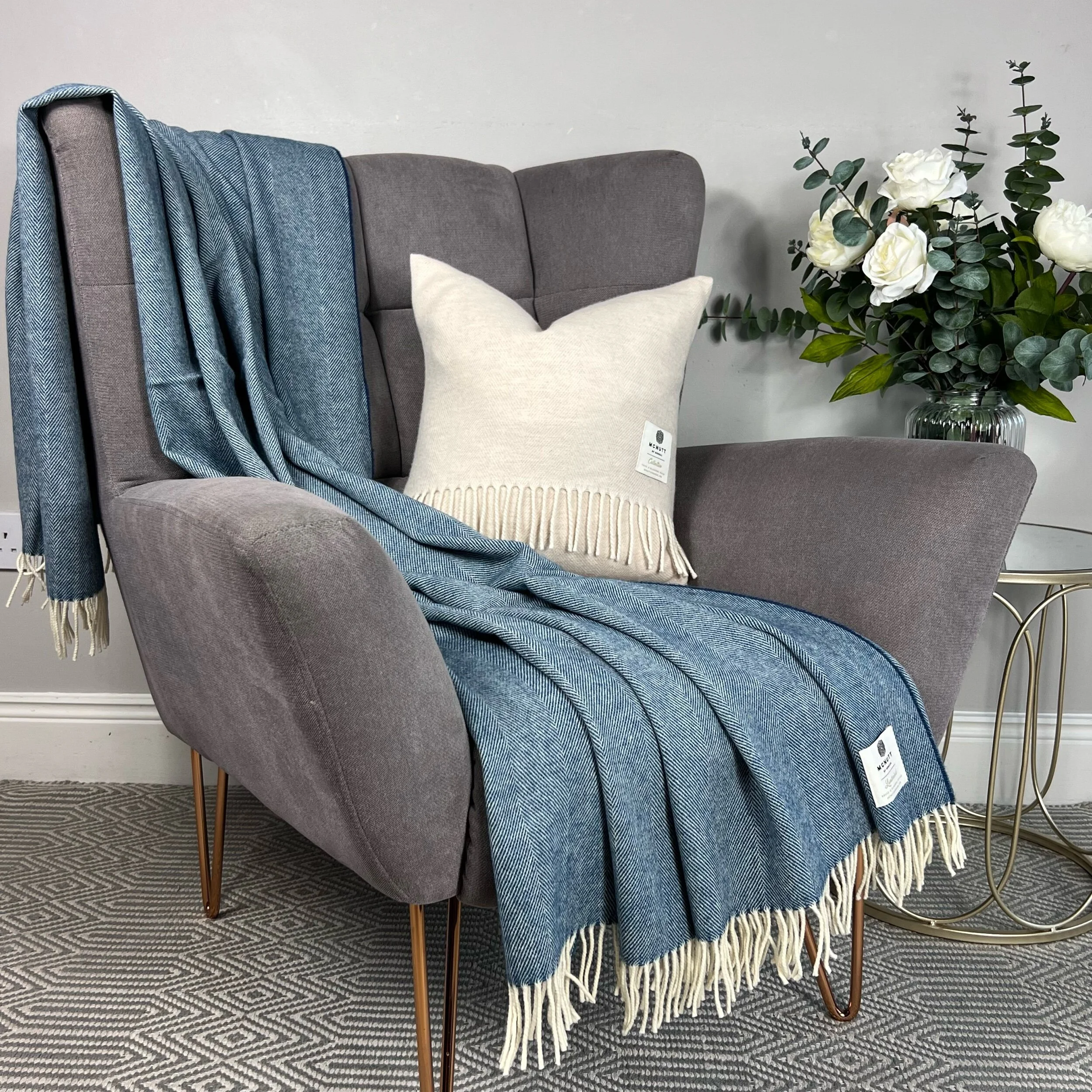The subtle spotted design of the Kingfisher Spotted cushion was inspired by the Kingfisher itself. Although small in size. its striking-coloured feathers speak volumes. Matching throw available.